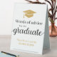 Make your graduate feel special with this unique table sign inviting guests to write "words of advice". Customised with your graduates name. The bottom features the bible verse "Proverbs 16:3 Commit your work to the Lord, and your plans will succeed." and can be changed to copy of your choice.