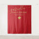 Red and Gold Graduation Party or Open House Fabric Banner or Photo Booth Backdrop Tapestry for the High School or College Graduate features elegant modern and bold calligraphy script with sans-serif Class of 2023 in a minimalist red and gold template with sparkly gold confetti sprinkle accent. Enter any class of year text and personalize with her name, school, and honors or other details to congratulate your hard-working grad.