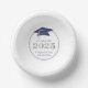 Elegant personalised graduation CLASS OF 2025 graduation party white paper bowls featuring faux metallic navy blue and silver graduation cap and year with your custom text (shown with CONGRATULATIONS NAME) in navy blue. ASSISTANCE: For help with design modification or personalisation, colour change, resizing, transferring the design to another product or if you would like coordinating items, contact the designer BEFORE ORDERING via the Zazzle Chat MESSAGE tab or email makeitaboutyoustore@gmail.com.