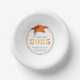 Elegant personalised graduation CLASS OF 2025 graduation party white paper bowls featuring faux metallic orange and black graduation cap and year with your custom text (shown with CONGRATULATIONS NAME) in black. ASSISTANCE: For help with design modification or personalisation, colour change, resizing, transferring the design to another product or if you would like coordinating items, contact the designer BEFORE ORDERING via the Zazzle Chat MESSAGE tab or email makeitaboutyoustore@gmail.com.