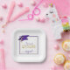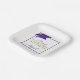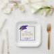 Modern personalised CLASS OF 2025 purple, gold and white graduation party plates with your graduate's name in a chic handwritten script with faux metallic purple graduation cap and faux metallic gold 2025. ASSISTANCE: For help with design modification/personalisation, colour change, transferring the design to another product or would like coordinating items, contact the designer BEFORE ORDERING via Zazzle Chat or makeitaboutyoustore@gmail.com.