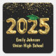 Graduation 2025 Gold Balloons and Green Cap Square Sticker