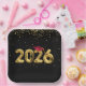 Gold foil balloons for 2025 graduation on a black background with a red graduation cap and gold confetti.