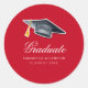Graduation 2025 Grad Cap Tassel Calligraphy Red Classic Round Sticker featuring a graduate's cap illustration with gold foil tassel. Perfect for your graduation party invitations, announcements or thank you cards.