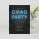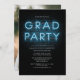Grad Photo Blue Neon Sign Graduation Party Invitation featuring popular white text and photo you can easily change. Change the date, party details and add your photo on the reverse side by clicking the "Personalise" button