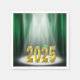 Gold 2025 text on stage in the spotlight on stage with a green curtain backdrop for graduation party