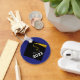 Graduation gift and grad party favours featuring black cap with gold tassel on blue background for seniors celebrating the Class of 25.