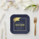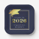 Graduation 2025 Navy Blue Faux Metallic Gold Paper Plate