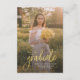 Add your favourite photo, graduation announcement, and party invitation on the reverse side by clicking the "Personalise" button. Featuring a full-frame vertical photo with the word "graduate" in bold script.