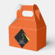 Creative graduation party favours gifts for your fave senior class of 25 grads featuring black graduation cap and gold tassel on an orange background.