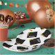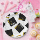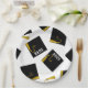 Creative graduation party plates featuring black and gold graduation caps. To personalise edit text to add name of grad and senior class year.