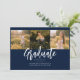 Graduation 4 Photo Collage Script Navy Blue Script Announcement card. Easily customise this by changing the text and replacing the photos with yours. A modern and trendier way to announce your graduation this year!