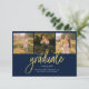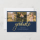 Graduation 4 Photo Collage Script Blue Gold Announcement card. Easily customise this by changing the text and replacing the photos with yours. A modern and trendier way to announce your graduation this year!
