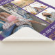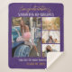 Photo collage gold script graduation party photo blanket for the new grad. Features 4 photos of the graduate, and the word "Congratulations" is set. Add their name, school college, and class year of graduation by clicking the "Personalise" button.