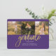 Graduation 4 Photo Collage Script Purple Gold Announcement for class of 2025. Easily customise this by changing the text and replacing the photos with yours. A modern and trendier way to announce your graduation this year!