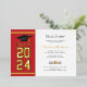 Add your year of graduation, name, and details of the venue with date to this modern bold gold on red white background with black typography graduation party invitation by using our "Personalise" button above