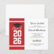 Add your year of graduation, name, and details of the venue with date to this modern bold red and white background with black typography graduation party invitation by using our "Personalise" button