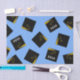 Creative black and gold graduation caps on a light blue background. Edit text to customise for class of 25 grad.