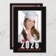 Black, white, and red achievement photo frame with grad hat for 2026 graduation party invite.