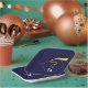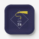 Creative graduation party or event plates for class of '26 grads featuring funny line and classic graduation cap with gold tassel on navy blue background.
