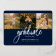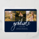 Graduation 4 Photo Collage Script Navy Blue Silver Foil Announcement for class of 2026. Easily customise this by changing the text and replacing the photos with yours. A modern and trendier way to announce your graduation this year!