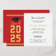 Add your year of graduation, name, and details of the venue with date to this modern bold gold on red white background with black typography graduation party invitation by using our "Personalise" button above