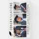 Elegant graduation party welcome banner and photo backdrop prop to celebrate the graduate featuring "Congratulations" on top next to an illustration of a graduation cap, a three photo collage and his or her name, class year and school name in modern typography. The background and text colours can be edited to match your school colours by editing in the design tool.