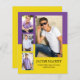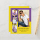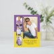 Modern, purple and yellow 4-photo collage graduation BUDGET announcement flat card. Personalise with your graduate's favourite photos and add their name, school, and graduation year. Use Zazzle's design tool to change the background colours to your own school colours.