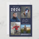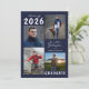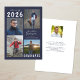 Editable navy blue and white graduation announcement with 5 photos (4 on the front and 1 on the back) and the graduate's name in a handwritten script font. The class year can be changed as well as the text font style, colour, size and placement. The back side has an optional custom text field to include additional information about the graduate (delete the sample text in that field if not desired). ASSISTANCE: For help with design modification or personalisation, colour change, resizing or transferring the design to another product, contact the designer BEFORE ordering via Zazzle Chat or email makeitaboutyoustore@gmail.com.