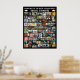 Create your own photo collage poster print for your graduate utilising this easy-to-upload photo collage template with 70 square and rectangle pictures to accommodate a wide variety of photo subjects that you can personalise with a custom title and name in your choice of font styles, sizes and colours (shown with white text on a black background). The sample shows CONGRATS TO OUR YEAR GRAD! and name. Make changes in EDIT. Showcase your graduate through the years at their graduation party and/or make as a commemorative keepsake for the graduate, parents and grandparents. OPTIONS: The sample is shown in a 24x30" size on Value Paper (Matte); other standard and custom print sizes and paper quality, Instant Digital Download file for printing locally or transferring the design to a foam board, banner or other product options are available on the ordering page. RESIZING TIP: Choose Custom Size for even borders by changing the height and width proportionately AFTER clicking the UNLOCK icon (looks like a chain link). ASSISTANCE: For help with design modification or personalisation, resizing or transferring the design, contact the designer BEFORE ORDERING via the Zazzle Chat MESSAGE tab or email makeitaboutyoustore@gmail.com.