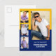Graduation Announcement 4 Photo Collage Blue Gold Postcard