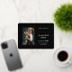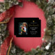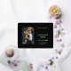 Classic Elegant mortar graduation hat graphic with modern script font graduation announcement postcard. Black and silver design.