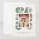 Retro-style yet modern graduation announcement photo card featuring bold geometric “GRAD” lettering and a colorful border framing the graduate’s photo. Vintage-inspired green and sage tones give this design a stylish retro feel, perfect for celebrating a milestone with timeless flair.