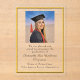 Announce your graduation in style with this superb acrylic card. The basic design includes your photo, message, signature name and gold, beveled border. You can scroll down to get a full product description of acrylic cards (on the left). All text is easily changed with the template. Selecting “Personalize this design” offers you several edit options to easily change the text (wording, plus type font, color, size, position) and to edit the design elements, if desired. You may also want to scroll down to the section “Transfer design to a product” for a few suggestions about other items this design can be used on. Comes complete with envelopes.
