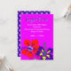 Unique and colorful graduation announcement with hibiscus flowers art. Tropical, hot pink color with dark purple, and off-white text. Three hibiscus flowers make a wide border at the bottom.. Fill in the templates to announce a daughter's graduation from high school or college. The reverse contains a pattern of graduation caps.