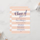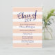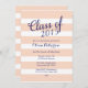 This graduation announcement / party invitation has a blush pink and gold glitter stripes design with navy blue text. The text can be personalised by you!
