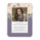 Celebrate your achievement with this graduation invitation and graduate announcement featuring a magnetic card template for a lasting keepsake. Showcase your journey with a grad photo design, complemented by a stylish calligraphy script and trendy typography. The elegant purple floral accents add a sophisticated touch, perfect for the Class of any high school or college graduate. Designed with botanical flowers, this invitation blends elegance and modern style. Personalize yours today!