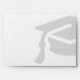 This envelope is perfect for graduation announcement cards. The front has a light grey graduate cap illustration. On the back flap is a return address.