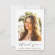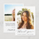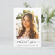 Modern graduation thank you card featuring the graduate's photo in a modern arched picture frame, "thank you" in an elegant script and their name and class year in simple typography. On the reverse, you can personalise a thank you message and add add their name in a signature-like script.