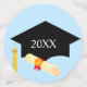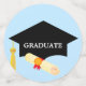 Elegant graduation cap, laurel and stars on light blue Table Confetti. Text ready to be personalised. Ideal for graduations! Shine like a star!