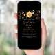 An elegant, simple invitation card for a 2026 (or any year) graduation party for both him and her. A black background and a modern black abstract tassel topper in faux gold with the year inside. Decorated with falling golden stars. Personalize and add a name and party details. The text Graduation and the name are written with modern handlettered style script. Golden colored text.