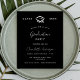 A modern, elegant graduation party invitation. A black background, white text. Personalise and add a name, year and details.