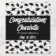 Black and white graduation party, black graduation caps thrown in the air for both him and her. Nice graduation party black and white wine and food lables for a celebrations for a graduate from a high school, college, or university with school colours of black and white. Personalise with graduating studen'ts name, class of, and name of school.
