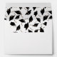 A black and white customisable envelope for a graduation party or graduation announcement for him or her. The back flap of the envelope is decorated with black graduation caps and mortarboards tossed in the air on a white background. Fun graduation party invite envelopes for high school or college graduations.