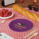 Congrats paper plates with a chic design illustrated with a graduation cap and diploma. Text says: Class of 2018 (you can customise the year). Set on a pretty purple background with gold coloured lettering. Simple, modern and elegant.