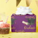 Congrats Graduate wrapping paper on a pretty purple background with an illustration of a graduation cap and diploma scroll.