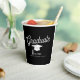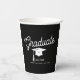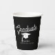 Modern black and white graduate paper cups for the high school or college graduate. The word "Graduate" is written in an elegant handwritten script font. A white (customisable colour) graduation cap sits in the middle. Personalised with the name of the graduate, their school name, and graduation year. The colours on these paper cups can be customised to match your school colours. Contact me for assistance with your customisations or to request additional matching or coordinating Zazzle products for your event.