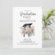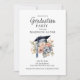 Graduation Cap Blue Pink Floral Photo Graduation Invitation
