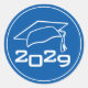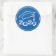 These blue 3" round stickers feature a graduation mortar board cap and your class year in chic white lettering. Also available in a smaller size. MATCHING items in our collection.