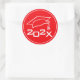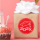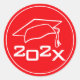 These red 3" round stickers feature a graduation mortar board cap and your class year in chic white lettering. Also available in a smaller size. MATCHING items in our collection.